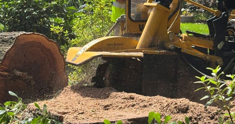 Stump grinding lets you avoid having to dig – after cutting off all the parts of the tree that we can remove by conventional means, we then use a machine to grind and shred the stump into mulch and chips. Afterwards, the stump gets covered by soil or fertilizer, and that’s the last you will see of it. The chips that result from the grinding operation can be used as mulch or decoration for the rest of your yard.